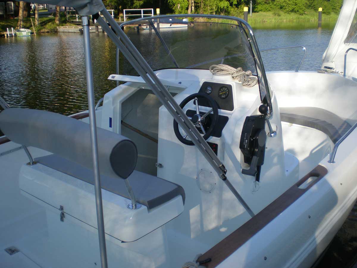 Alle unsere Boote sind mit einem Fahrverdeck ausgerüstet, welches als Sonnen- bzw. Regenschutz genutzt werden kann. Weiterhin sind alle Motorboote mit einem Steuerstand (Lenkung und Fernbedienung – Schaltung) ausgestattet.